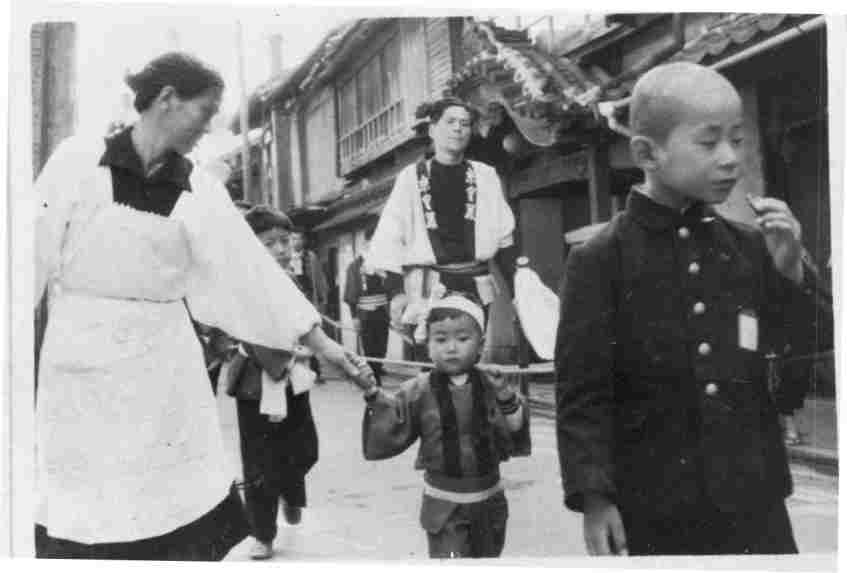 お手伝いの椿おばちゃんに手を引かれて私は綱を曳きました。