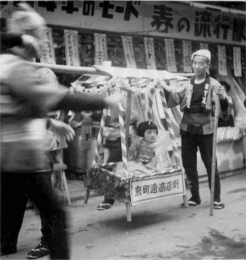 かごに乗っているのは大塚のお嬢ちゃんです