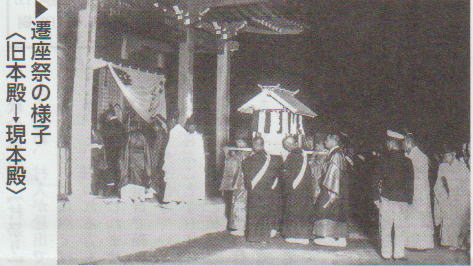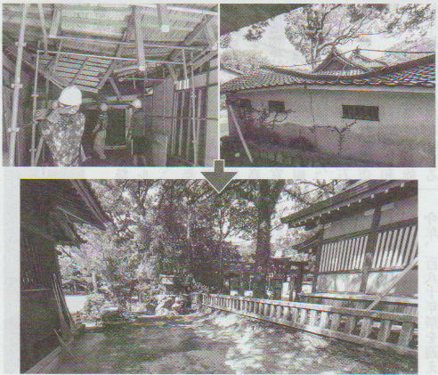 それ以来、長年に渡り旧拝殿は前述のとおり神器庫として使用され、平成十七年に発生した福岡西方沖地震にも境内の灯篭が一部倒壊する中、耐え忍び、神社業務には欠かせない場所として活躍して参りました。